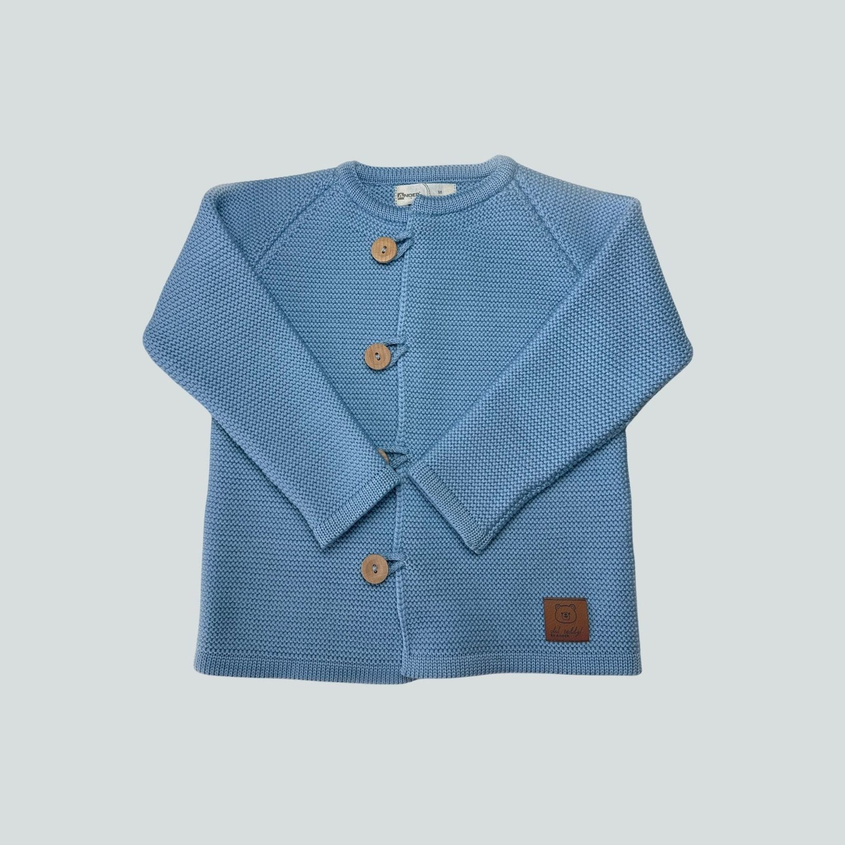 Ce cardigan bleu Maé en 100 % laine de mérinos est conçu pour accompagner bébé au quotidien avec douceur et confort.